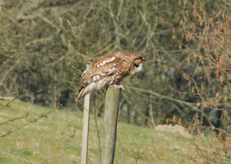 We also saw the owls much more regularly during the day. In late-April, we watched this owl hunting from a fence post in the garden. He stayed there for at least 15 minutes, even while I was taking photographs.