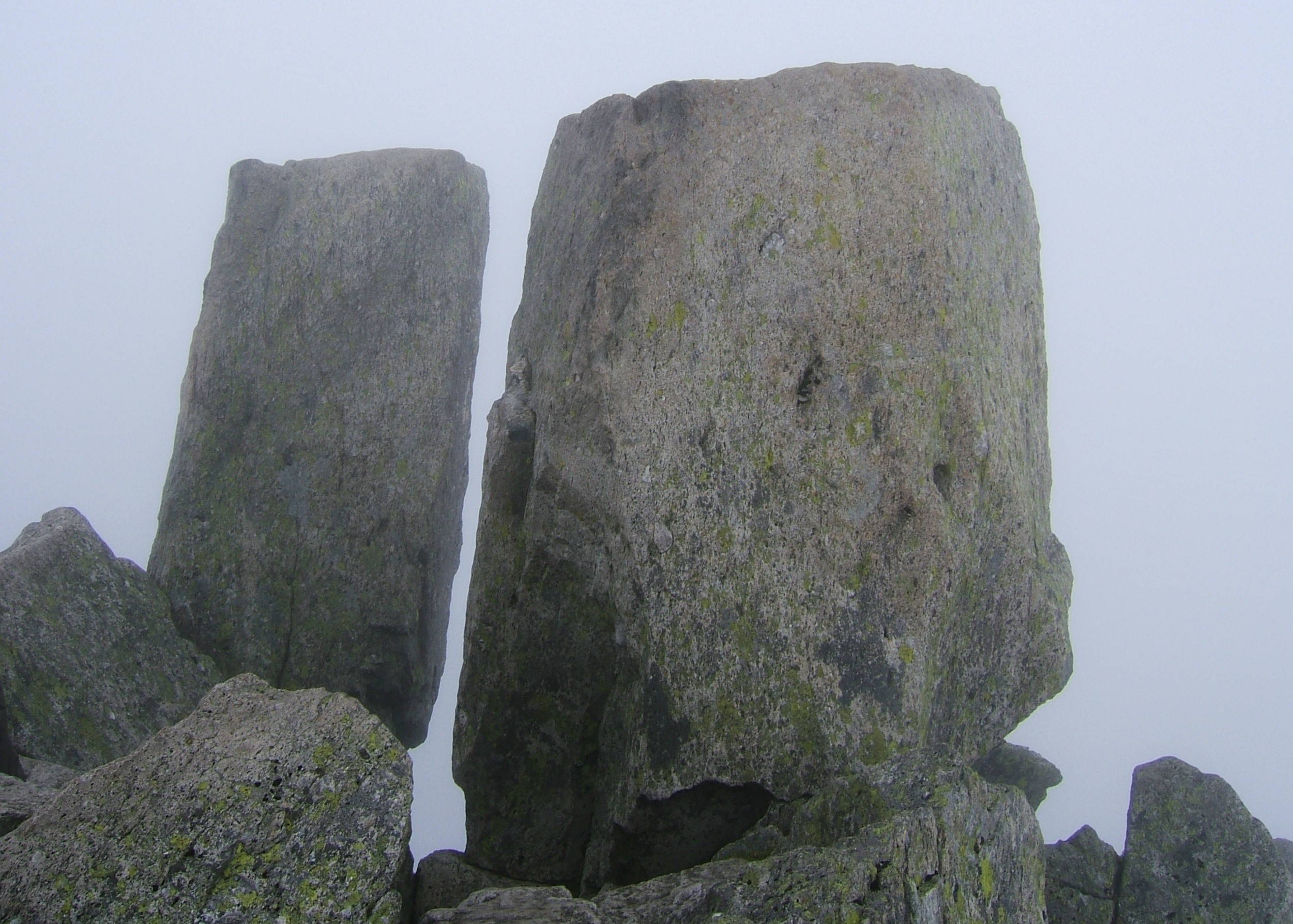 ou manoeuvre over the gap between the rocks. The real challenge is not being too conscious of the large drop to your right as you make your move. Once over this, the summit was straight ahead with its famous Adam and Eve monoliths. The tradition of jumping from one to the other had to be honoured in the breach. I think I would have done it if my frozen shoulder hadn’t prevented my clambering up – but that may be wishful thinking. Anyway, it’s saved for another time, along with the north ridge path.