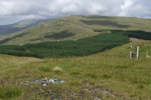 Eventually I joined the forest track and seemed reasonably close to where I should be. I followed this for a while but was always wary in case the path had been changed. When it started to wind down the hill side it looked like I was heading back in the direction of Dinas Mawddwy rather than to Cwm Cywarch. I backtracked a bit and found the faint path at the forest gate that the Nuttalls mention. I took this, passed over a stile and then joined the steep but clear zigzag path down back to valley bottom and the car park.