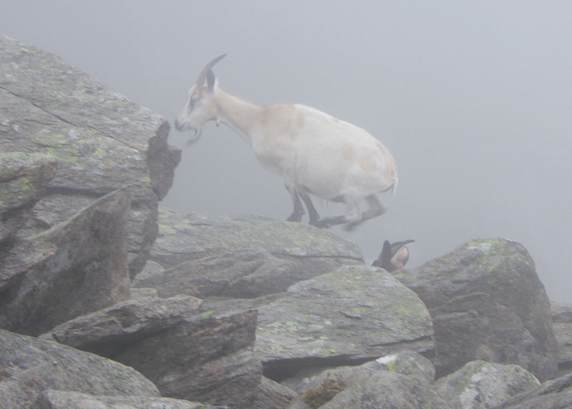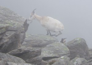 ility down to no more than 20 metres if that we decided to wait and see if things got any clearer before tackling the summit. As we sat talking we heard some scrambling in the rocks behind us, expecting to see other walkers or some sheep we turned to see a herd of wild goats. This was the first time I’d actually seen them on the hills in Snowdonia, and it was a pleasant distraction watching them grazing below us before clambering over the rocks and away.
