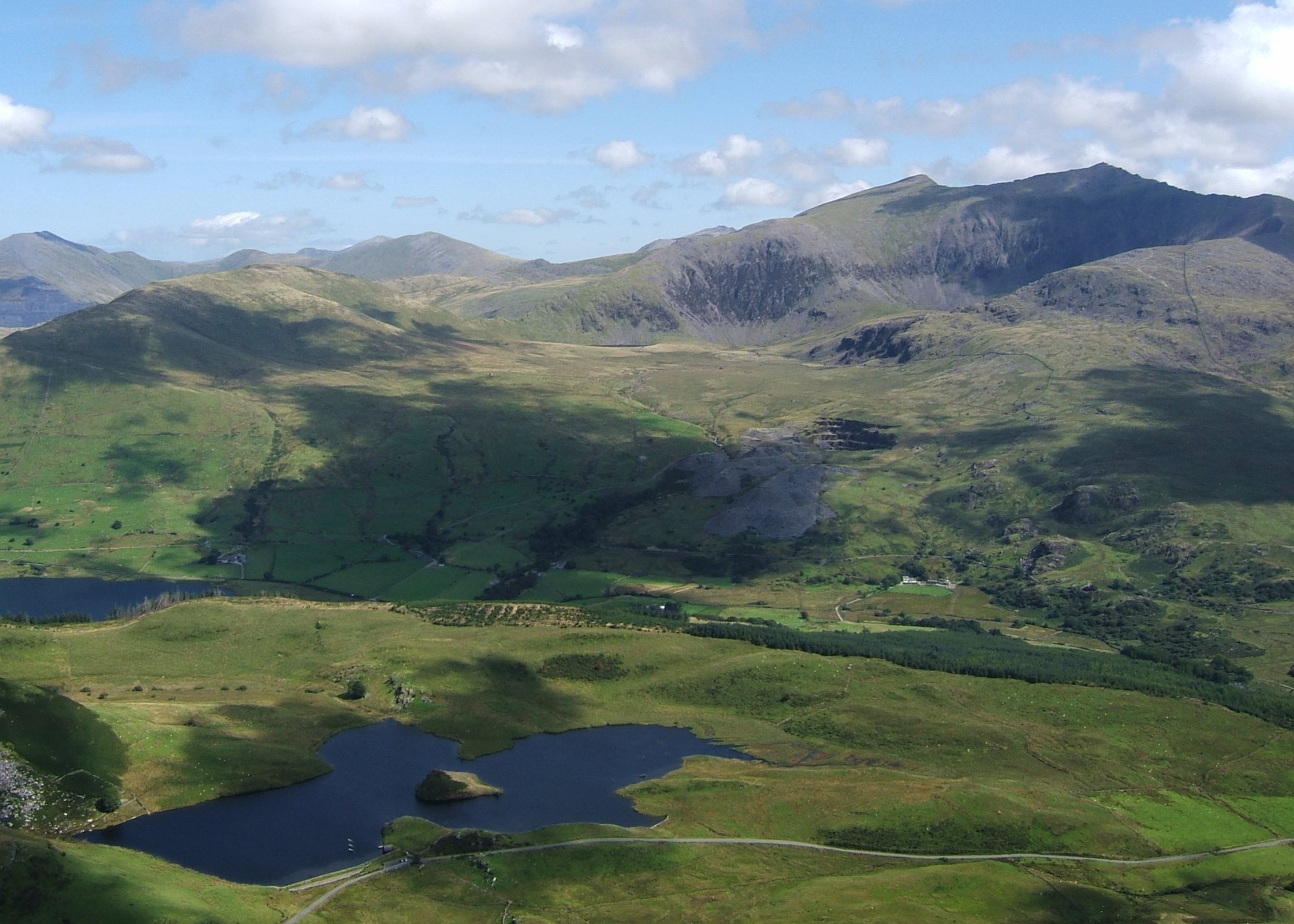 Mynyndd Mawr stands in isolation opposite the Nantlle Ridge and is climbed in a straightforward ascent from the village of Rhyd-Ddu. But it’s more than just a summit to be bagged. The crags of Craig y Bera looming over the dramatic pass between Ryd-Ddu and Nantlle are a tantalizing prospect and the walk provides superb views of the Nantlle ridge and across to Moel Elio and the western approach to Snowdon with Llyn Cwellyn below.